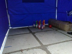 Вся школа была украшена флагами Партии Регионов, а детям предлагали забаву – катать шары и сбивать кегли с изображением Юлии Тимошенко и Юрия Луценко. В избирательном штабе оппозиции заявляют, что налицо явное нарушение законодательства – ученики привлекаются к избирательному процессу.