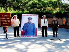 Так, к 8 часам утра к могиле Неизвестного солдата, расположенной в парке имени Гагарина, прибыли активисты Крымского республиканского комитета Коммунистической парии Украины, которые возложили цветы к Вечному огню и организовали почетный караул у постамента. Вместе с этим они установили возле могилы портрет Сталина.