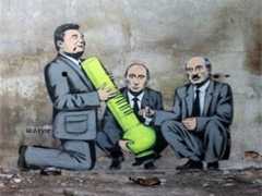 В сети появилось фотографии нового творения популярного крымского граффитчика, работающего под псевдонимом Шарик. На некоей стене он изобразил президента Украины, Белоруссии и России Виктора Януковича, Александра Лукашенко и Владимир Путина, сидящих на корточках и раскуривающих бонг (традиционное американское устройство, которое применяют для курения марихуаны). Данный снимок моментально разлетелся по всем российским и украинским СМИ, а также в социальных сетях.