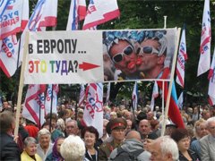 - Разумеется, что мы не войдем в Евросоюз как полноценный член, мы к этому просто не готовы. Достанется всем нашим предприятиям, занимающимся машиностроением и металлообработкой, мы потеряем сельскохозяйственный рынок, а население станет безработным. Это означает, что большинство социальных программ будет свернуто, а население начнет вымирать. К тому же, Европа сразу же навяжет нам свои ценности, в виде пропаганды гомосексуализма и гей-парадов. Нам этого не нужно! - возмущаются митингующие.
